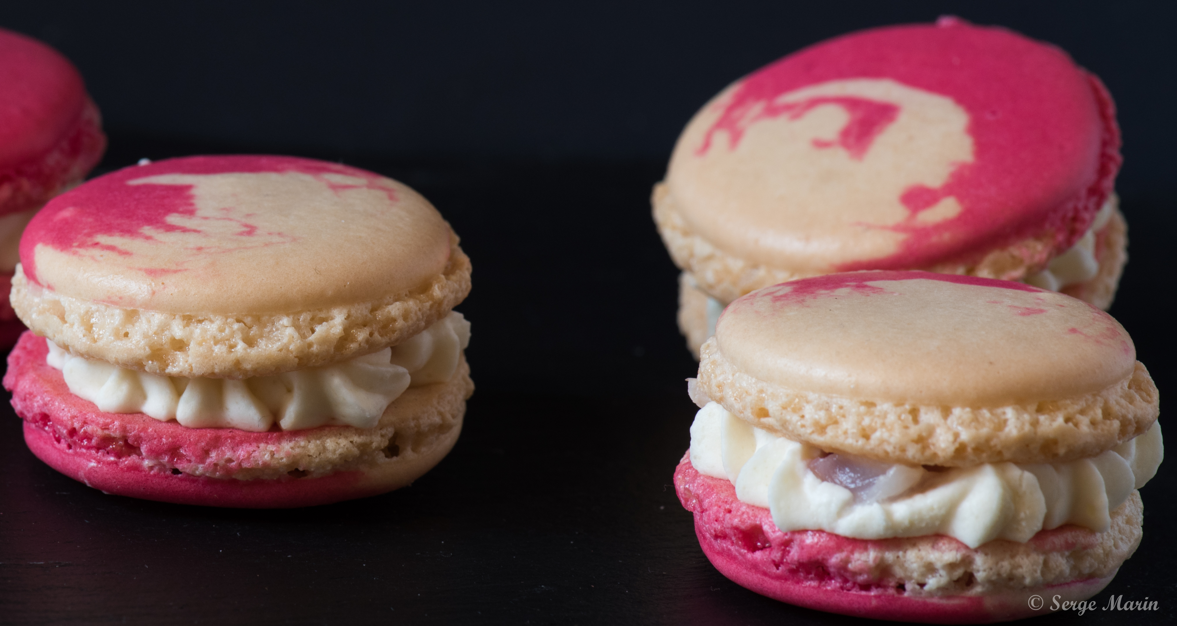 Pourquoi ce macaron, c’est en regardant une recette de Michalack : La Pavlova, framboise, litchi et citron vert. Je me suis dit pourquoi ne pas faire cette composition dans un macaron. Aussitôt dit aussitôt fait. j’ai un peu modifié la recette en réalisant une ganache montée mascarpone liqueur de litchi. Ce macaron est un vrai régal avec ce parfum subtil, une fraicheur en bouche…il est très apprécié de tous. C’est pour cela que……..