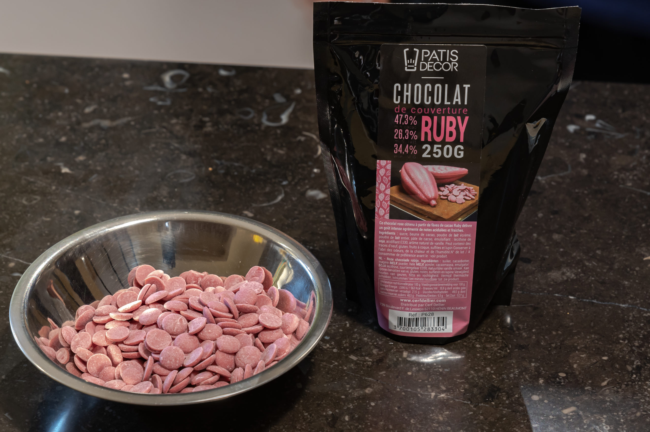 - 62.34 g de chocolat Ruby Callebaut