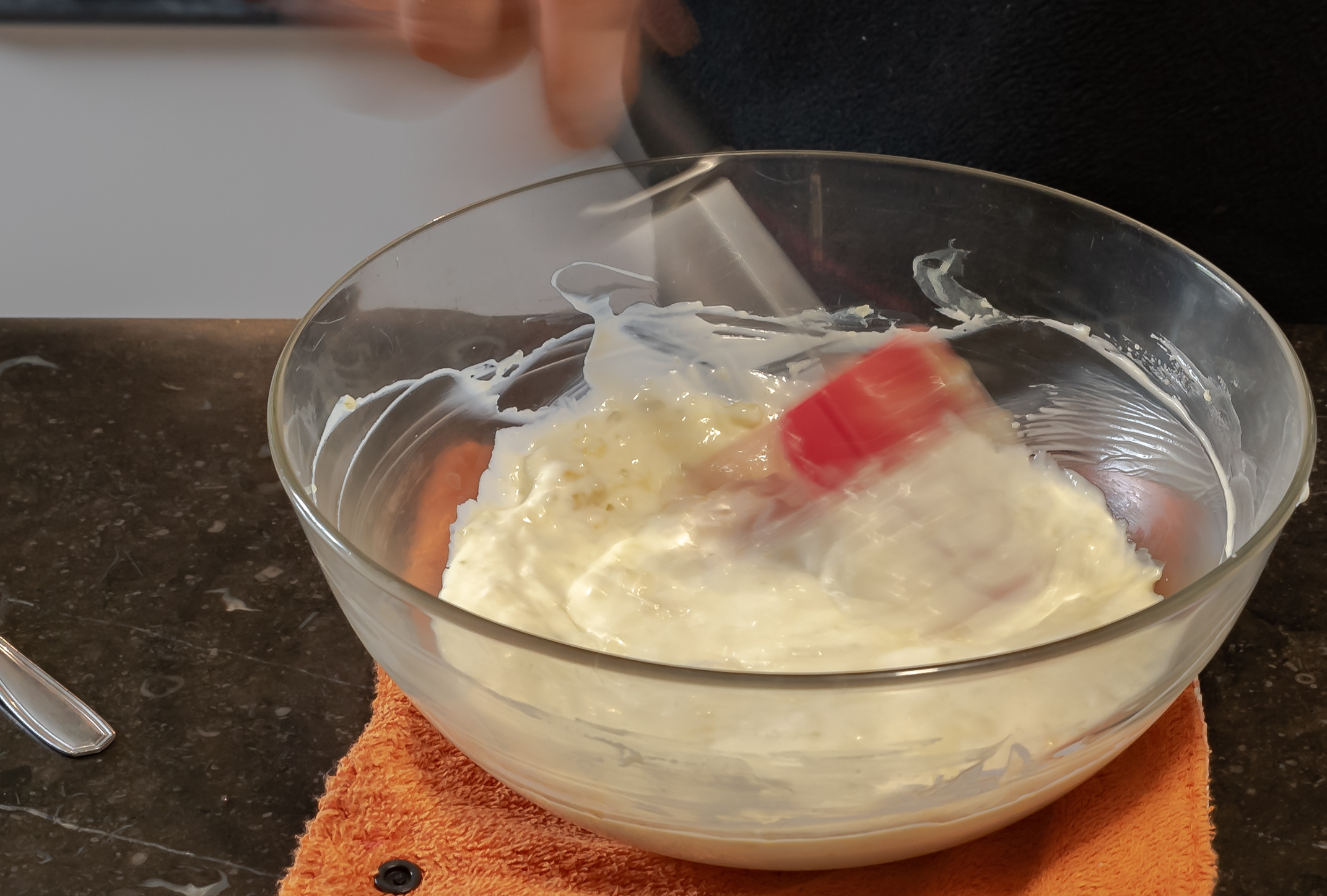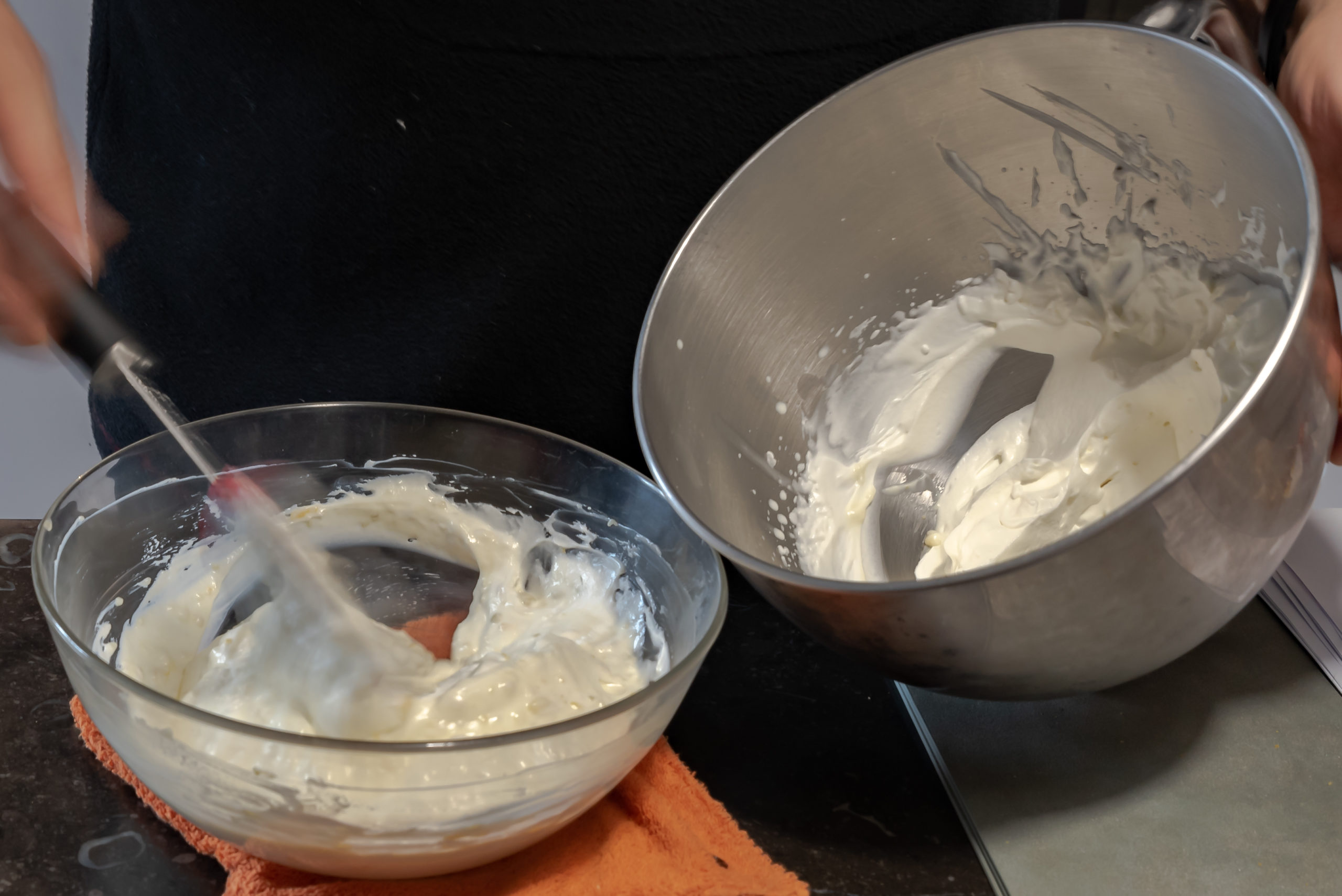 - Monter en chantilly 150g de crème liquide. Réserver pour plus tard.